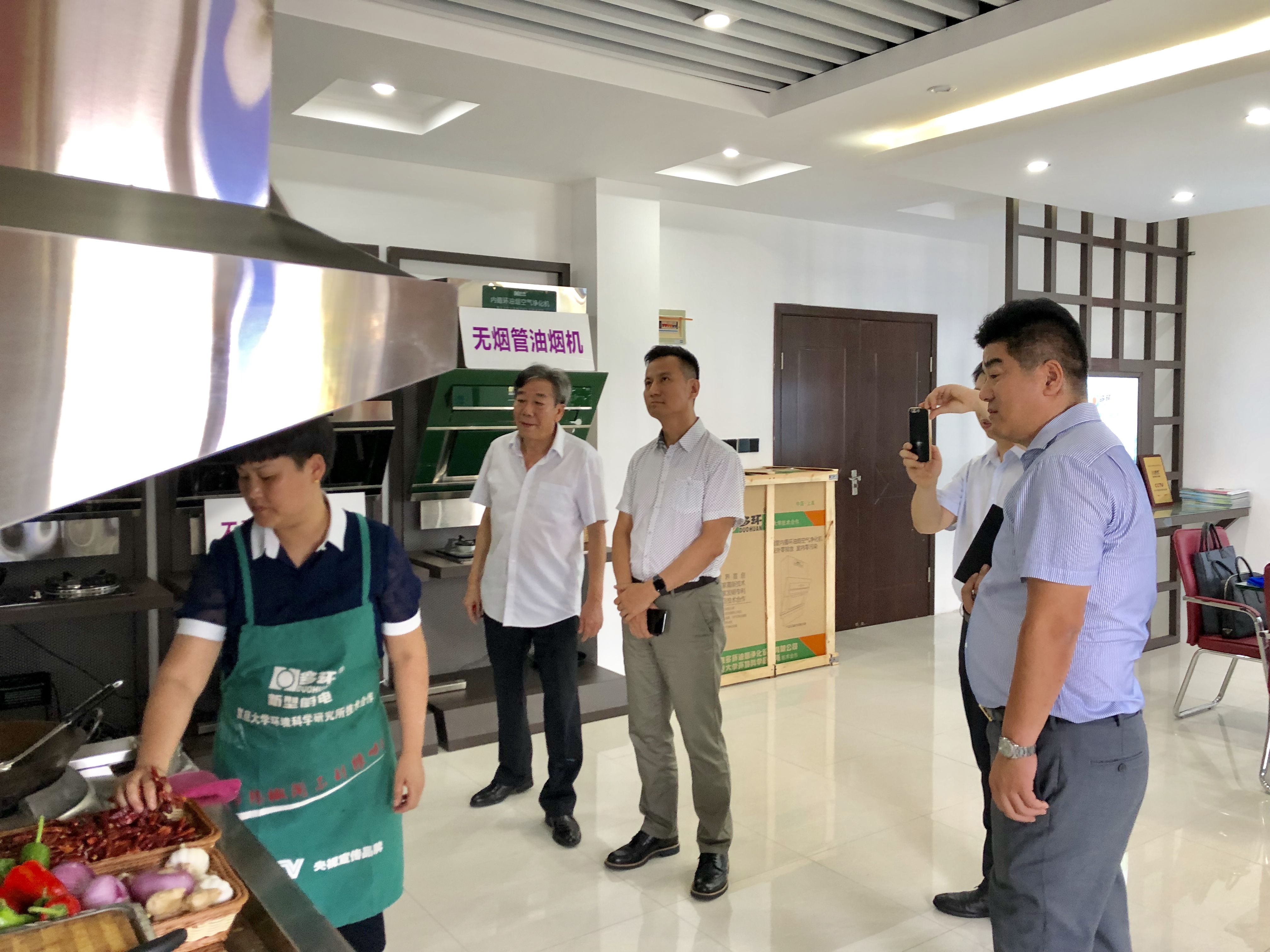 2019年8月12日,中國(guó)五金協(xié)會(huì)吸油煙機(jī)分會(huì)理事長(zhǎng)孟凡波、復(fù)旦大學(xué)環(huán)境科學(xué)研究所所長(zhǎng)張仁熙及業(yè)內(nèi)相關(guān)專家一行,專程前往上海多環(huán)油煙凈化設(shè)備有限公司參觀調(diào)研。
