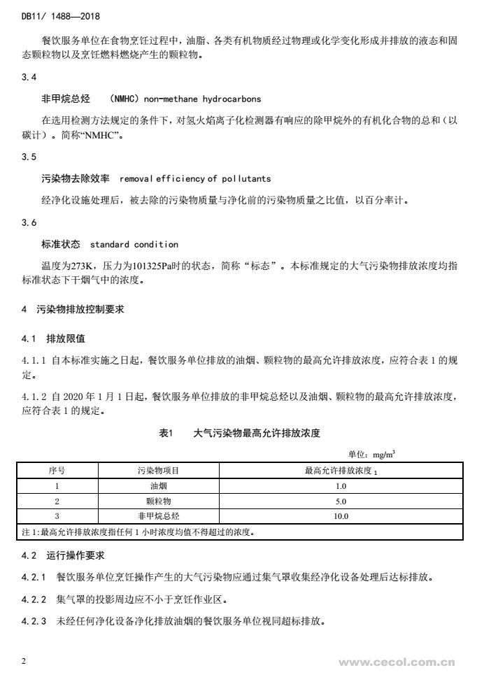 2018年北京市《餐飲業大氣污染物排放標準》(DB 11/1488-2018)